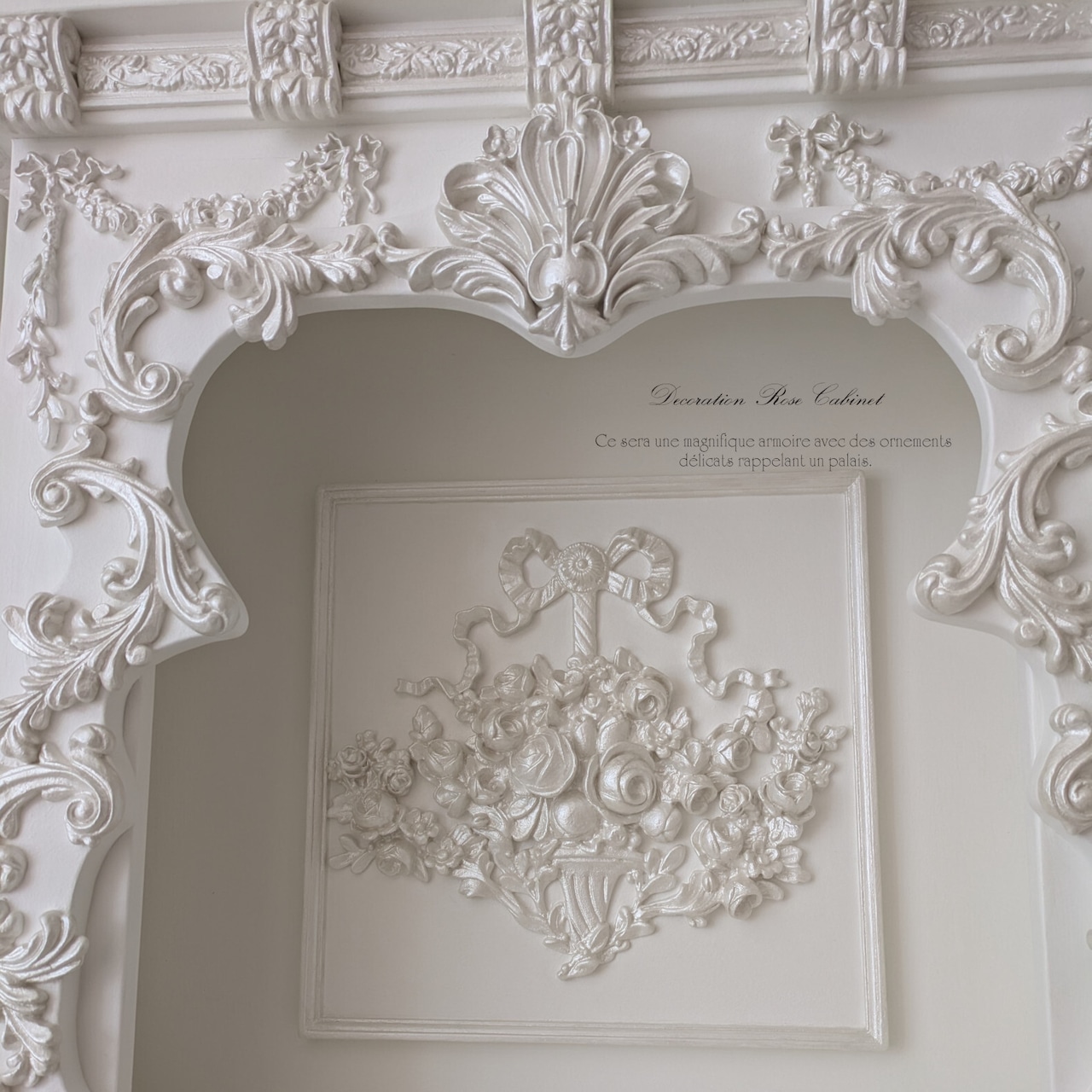 横サイドには優美な装飾の中に、立体感あるroseとおリボンで