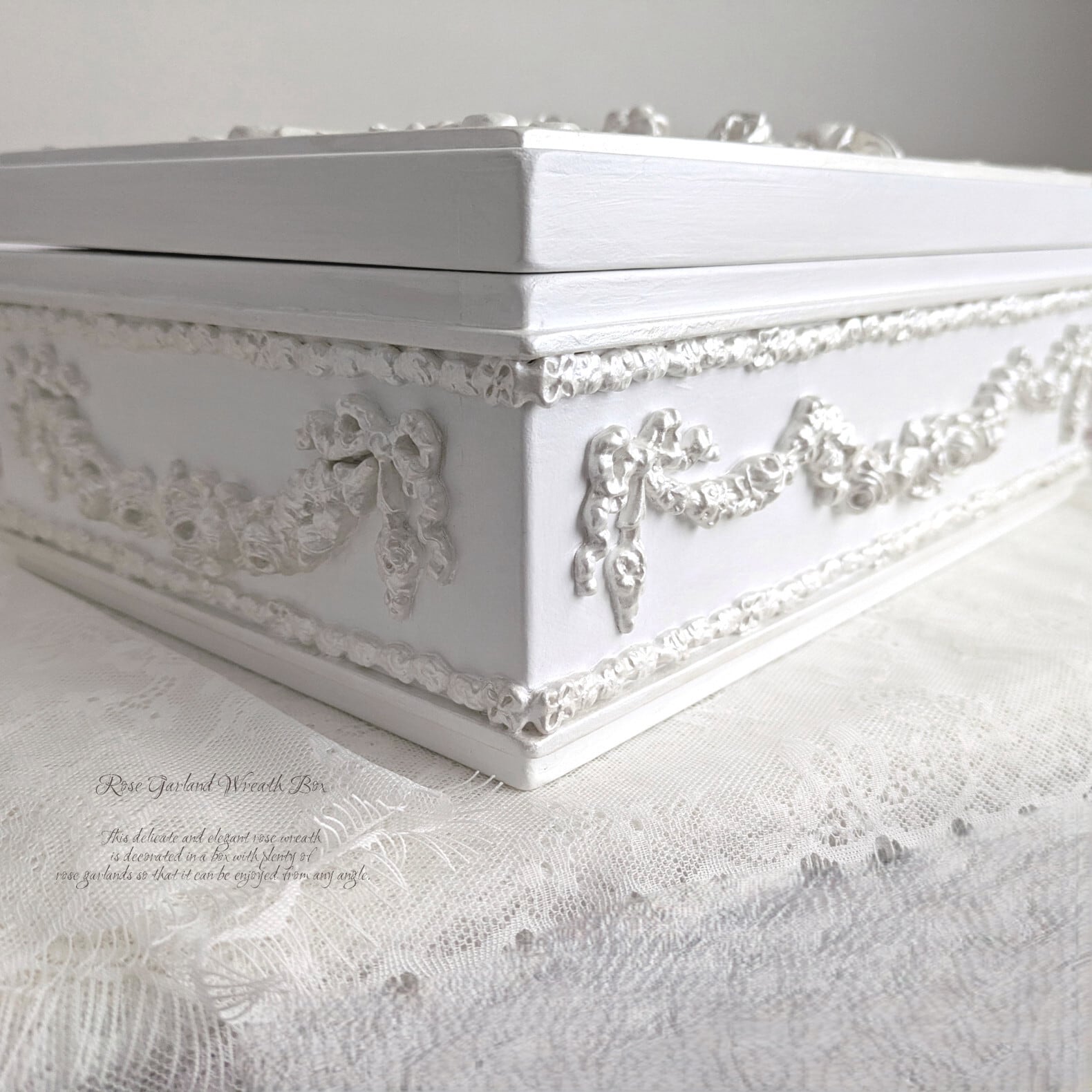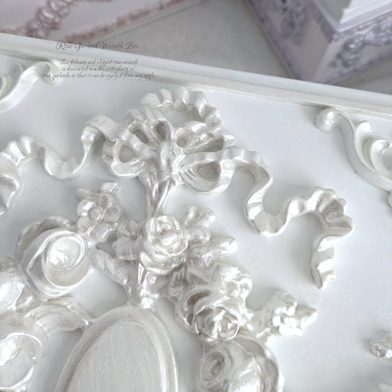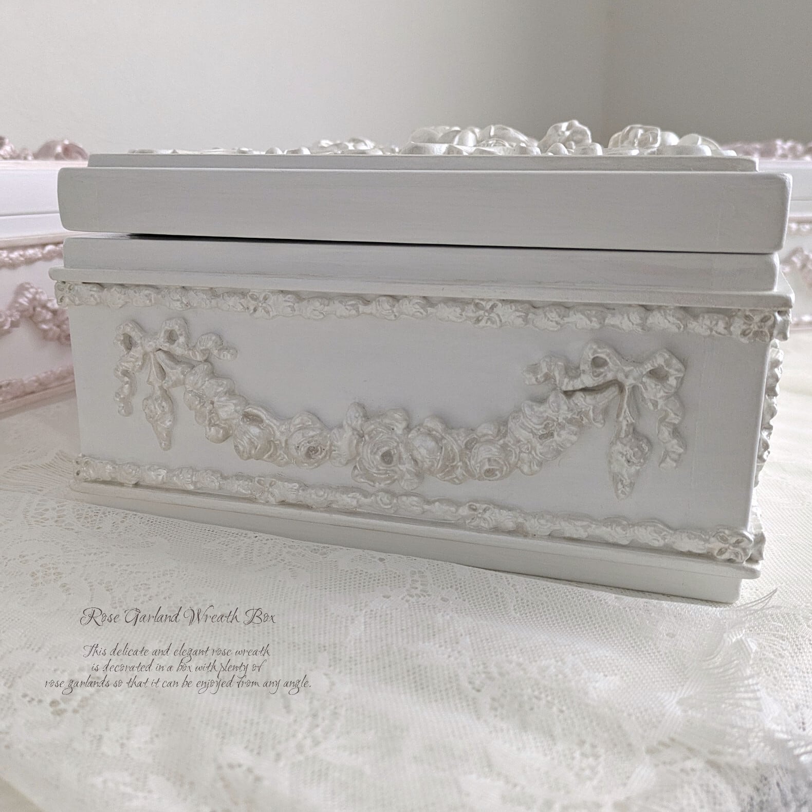 ふた部分には、おリボンを添えたroseリースから