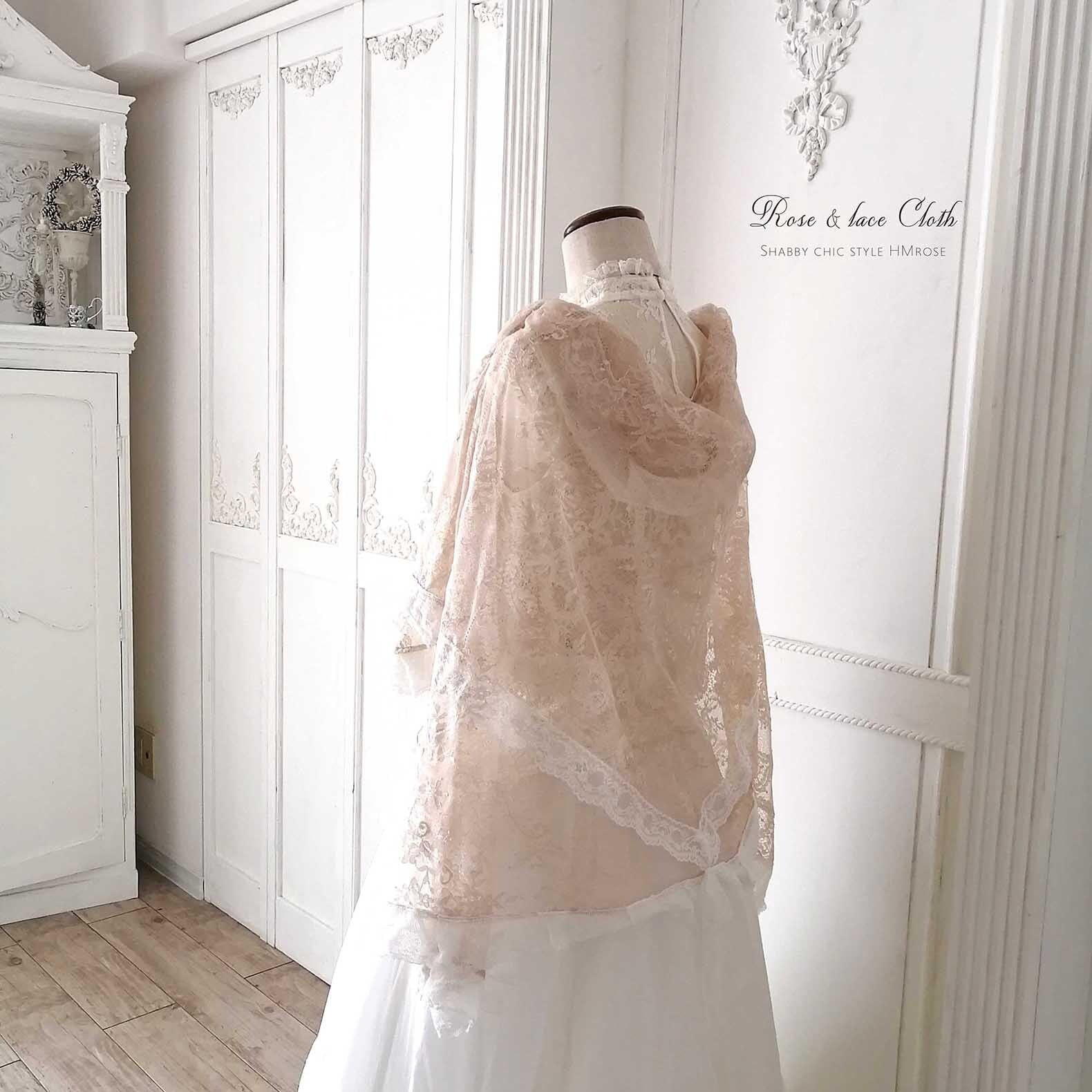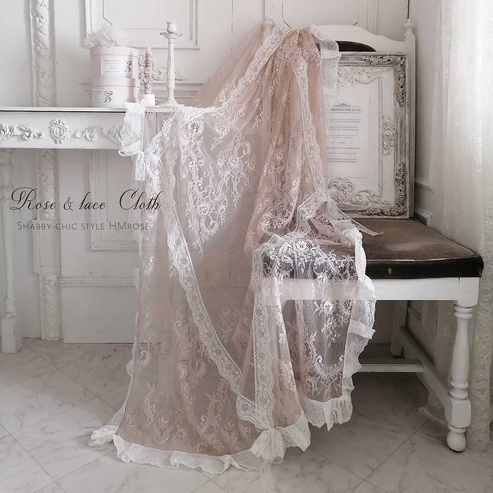 【sold out】フリル『Rose ×リボン』 2wayレース*クロス 136×90cm [za-439]
