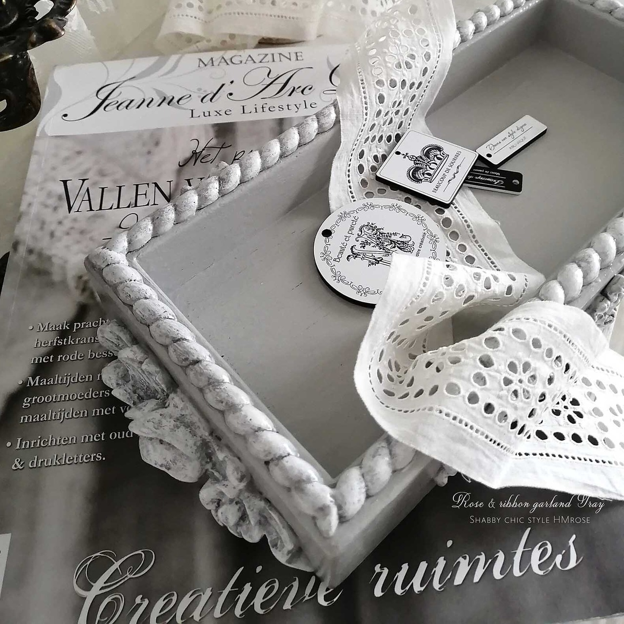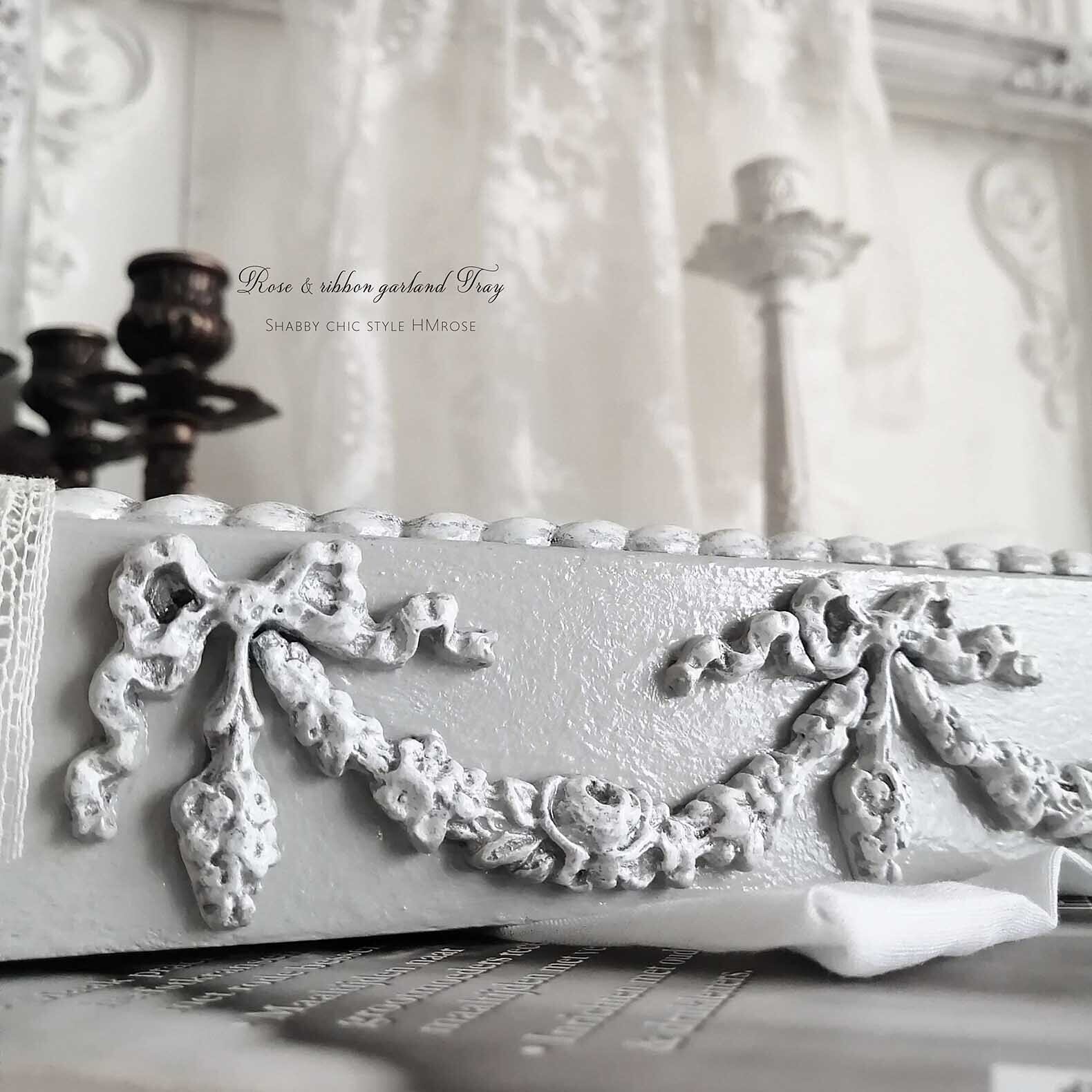 【グレー】『rose & ribbon ガーランド』 BOXトレー [sc-85]